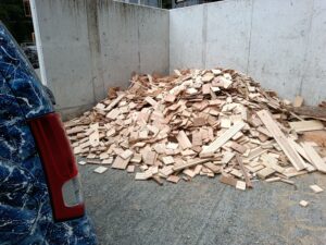 最後に、薪ストーブの焚付に活躍する廃材をもらいに行ってきました。