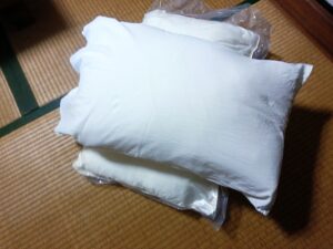 いきる宿 磯崎に、新しい枕を持っていきました。